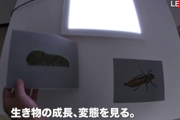 背面からライトを照射することで隠されたデザインに切替わる仕掛け。※背面に太陽をかざす事でも使用可能となります | ||