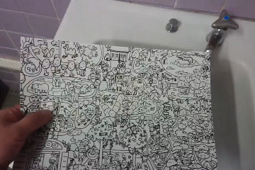印刷面を水で濡らすと色やデザインが浮かび上がる仕掛けとなります。※多湿(湿度95%以上)でも同現象が起こります。 | ||